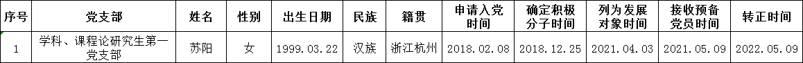 党委会集体审议讨论了苏阳同志的转正问题。党委委员共7名,实到会7名。经逐个审议和表决,7名党委委员一致认为苏阳同志已具备正式党员条件,同意批准按期转为中共正式党员,党龄从预备期满转为正式党员算起。具体名单公布如下: