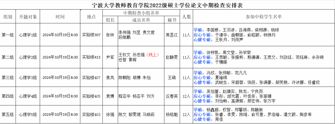 澳门新葡京网 教师教育澳门新葡京网 2022级硕士学位论文中期检查安排公告(心理学组)
