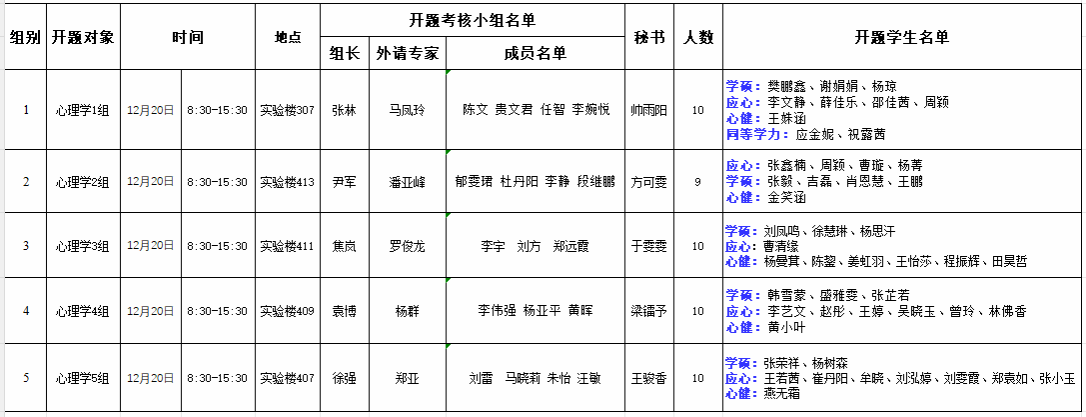 新葡京娱乐城 2025年度硕士学位论文开题考核安排表(心理组)