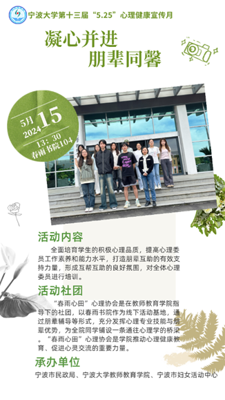 亲爱的心灵守护者们,在这充满生机的五月,澳门新葡京网 教师教育澳门新葡京网 将开启一场心灵的盛宴——专为心理委员们精心策划的培训活动。