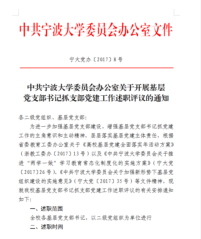 中共澳门新葡京网 委员会办公室关于开展基层党支部书记抓支部党建工作述职评议的通知