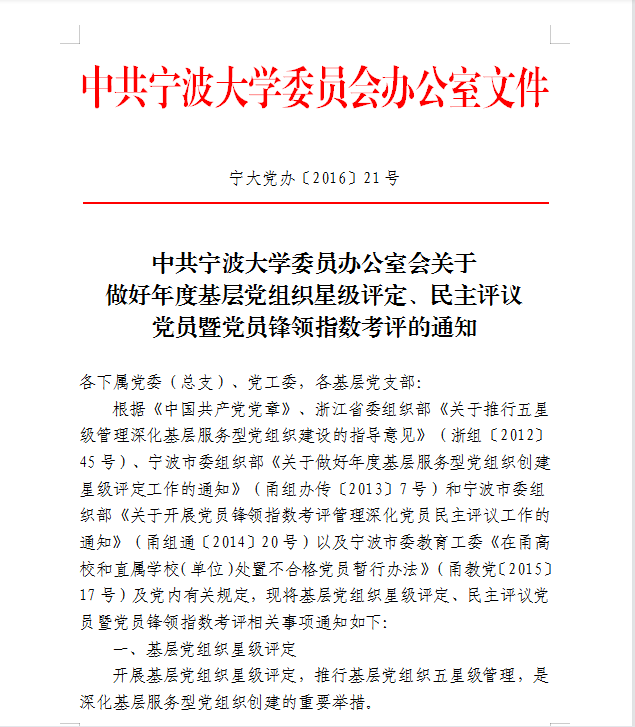 中共澳门新葡京网 委员会办公室关于做好年度基层党组织星级评定、民主评议党员暨党员锋领指数考评的通知
