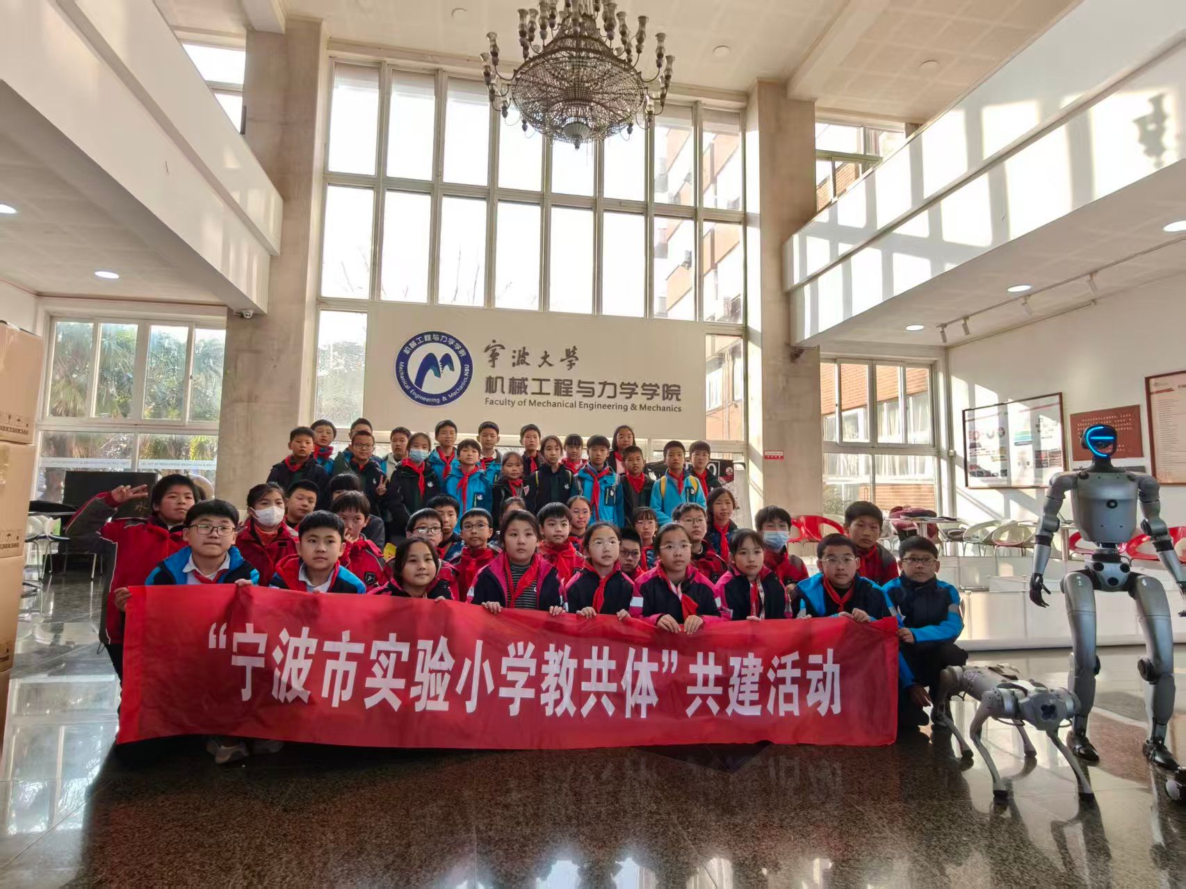 标志性建筑 —— 包氏教学楼前整齐列队,留下了珍贵的集体合影,为本次研学之旅定格下美好开端。随后,在宁大师生志愿者的引导下,大家沿着绿意盎然的林间小道漫步校园,感受着“双一流”高校的学术气息与优美环境。