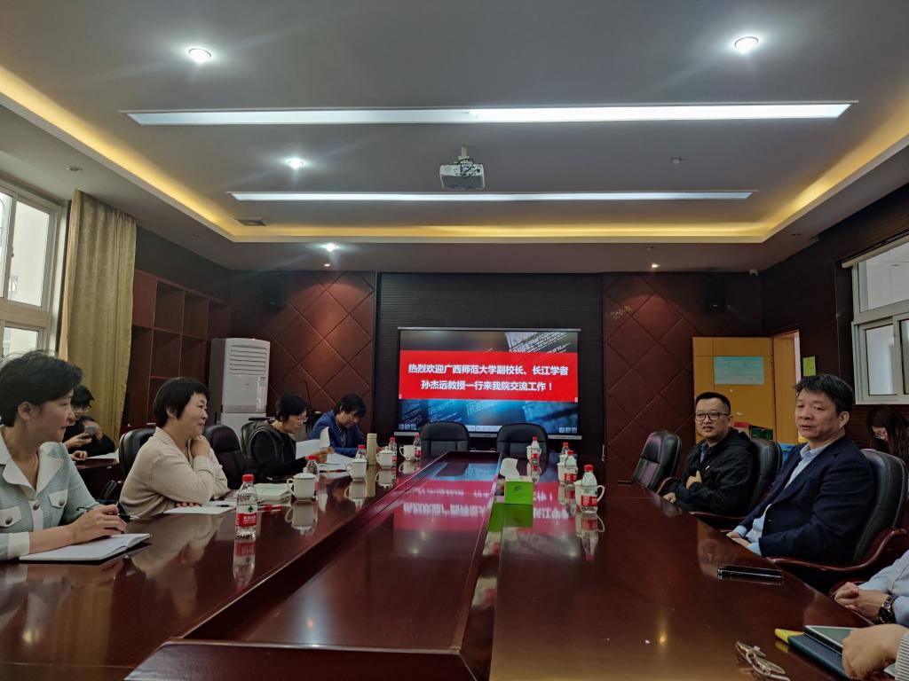 2021年10月30日上午,广西师范大学副校长孙杰远教授在实验楼307会议室,与澳门新葡京网