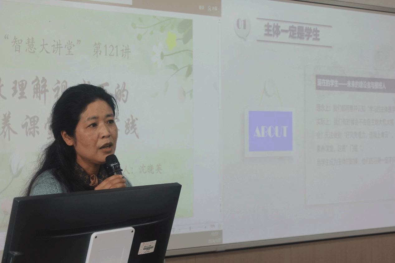 本次讲座特邀浙江省特级教师、正高级教师沈晓英老师主讲。沈晓英老师从教30年来,坚持践行课程理念,做基于儿童立场、课程育人的科学,构建了以“生活经验聚焦——活动设计关联——思维互动研讨——核心素养培育”的课堂教学链,形成了“适切、有趣、严谨”的教学风格。