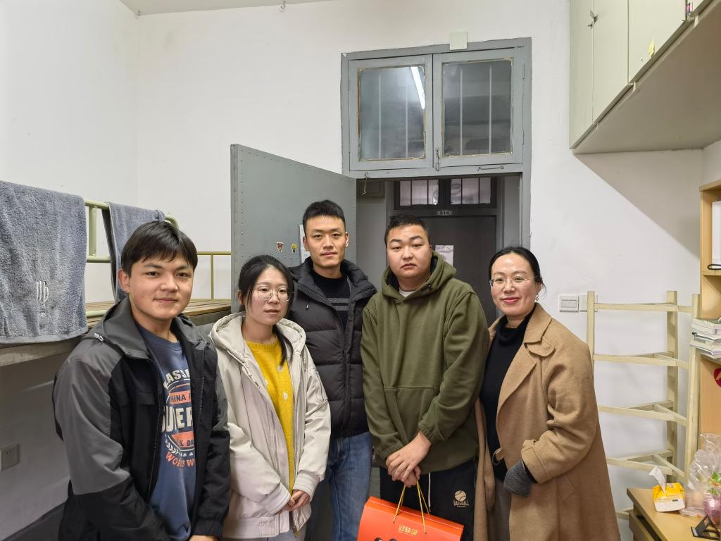 学生工作负责人、学工办辅导员,走访寒假留宿学生寝室,为留宿同学送上温暖。