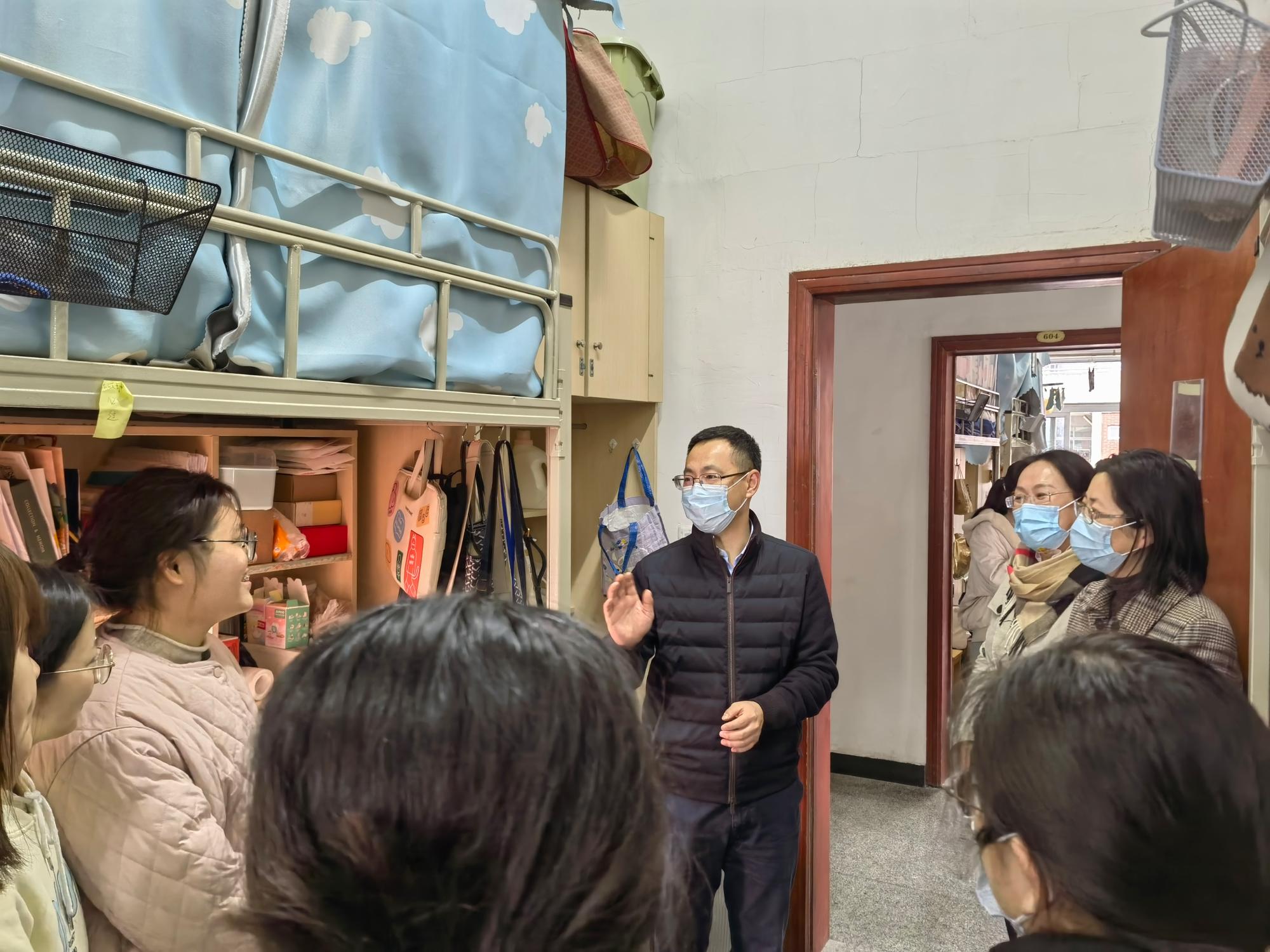 毕业生所在寝室,与同学们进行了亲切交流,询问了大家学习、生活和就业的情况。童书记提到小学老师是人生路上非常重要的引路人,小学阶段的基础教育是青少年成长成才的第一步,一个好老师对于孩子的健康成长意义重大。“我至今还记得我上小学时小学语文老师的名字”童书记感慨道,同时他还勉励大家毕业后要持有教育家的情怀做小学老师,要把教育当成事业而不是一份简单的工作来做。童书记随即也叮嘱大家找工作时注意防疫,出门一定带好口罩,安全出行。短暂的交流后,同学们纷纷表示会继续努力,承担起为国育人、为党育才的大任。