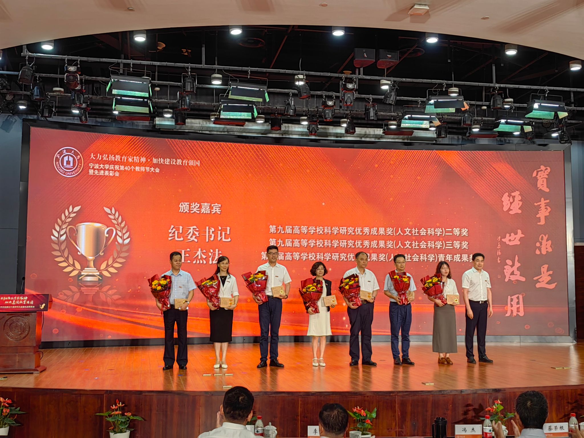 科学研究优秀成果奖(人文社会科学)三等奖的贺国庆老师(右四)和邵光华老师(右三)颁奖