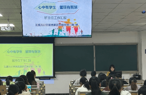 讲座伊始,陈楠老师就抛出“如何做一名幸福的智慧的班主任”这样一个问题激发了同学们的思考。讲座过程中,陈楠老师分别从“以生为本创特色,构建幸福班集体”、“架起家校连心桥,筑牢育人共同体”、“以学修身铭初心,智慧管理护新苗”三个方面娓娓道来,教导在场的同学们心怀阳光,脚踏净土,桃李芬芳,努力成为一名幸福的智慧的班主任。