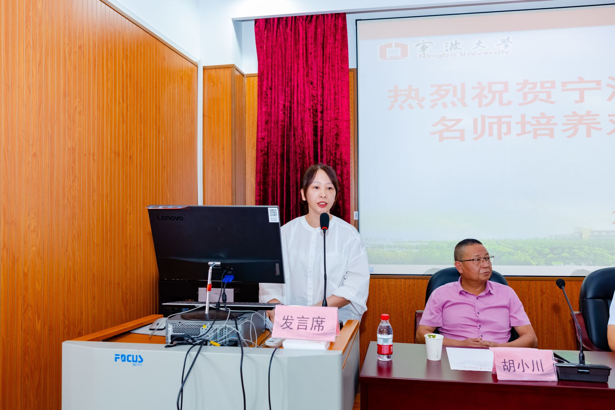 宁海中学王巧飞作为学员代表发言,王巧飞老师围绕“我们是谁”“我们将成为谁”“我们该如何行动”三方面展开,强调了在接下来的时间要以学习提升为重,以成长升级为刃,以学有所获为要,不断进行自我雕琢和反思沉淀,努力成长为自己心中的名师。