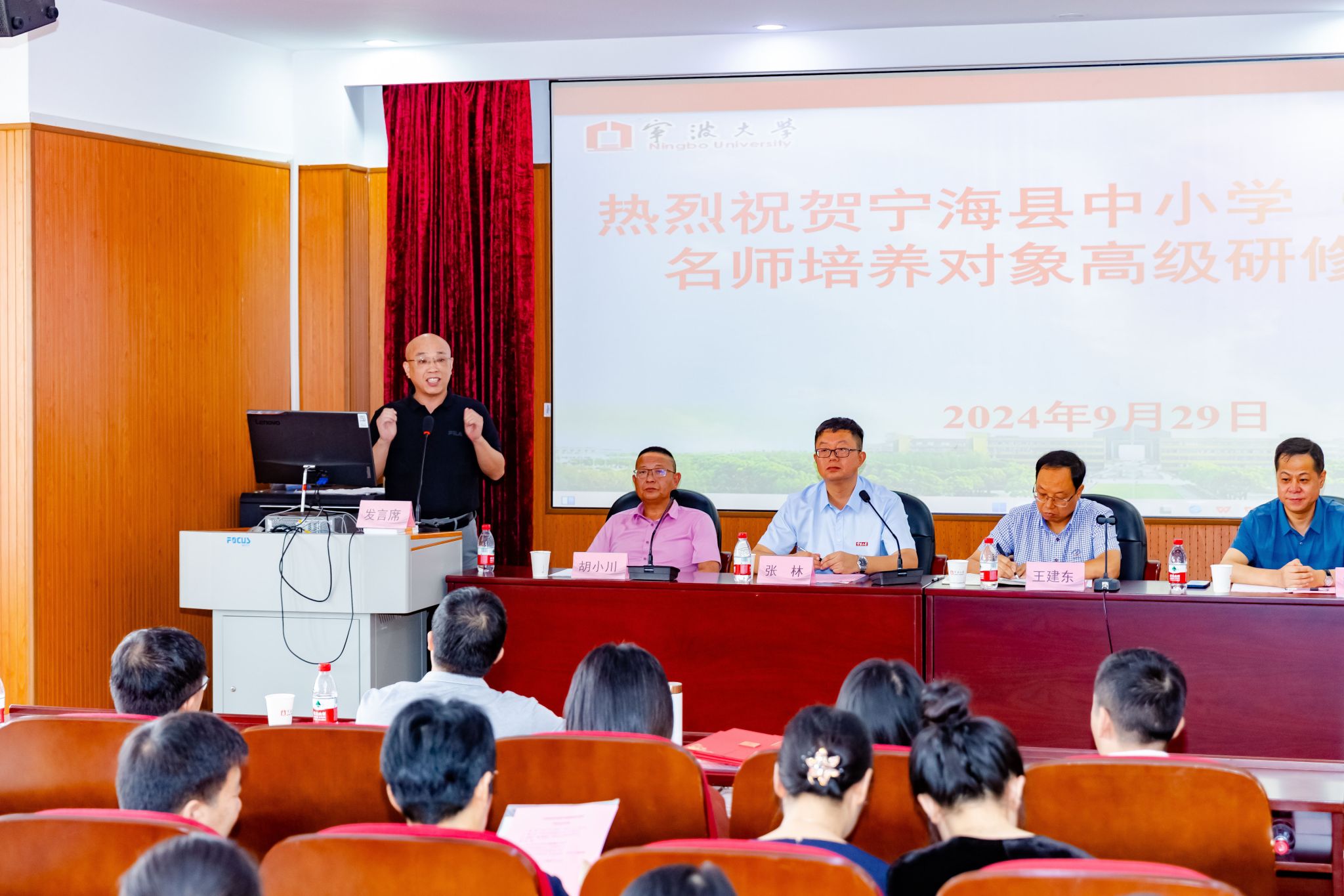 宁海县教育局副局长王建东代表宁海县教育局讲话,他围绕“高度”“高端”“高我”对全体学员提出了殷切期望,强调学员应秉持“有情怀”“有扎实学识”“有实干敢担当”的宝贵品质,希望学员们为宁海县的教育事业贡献力量。