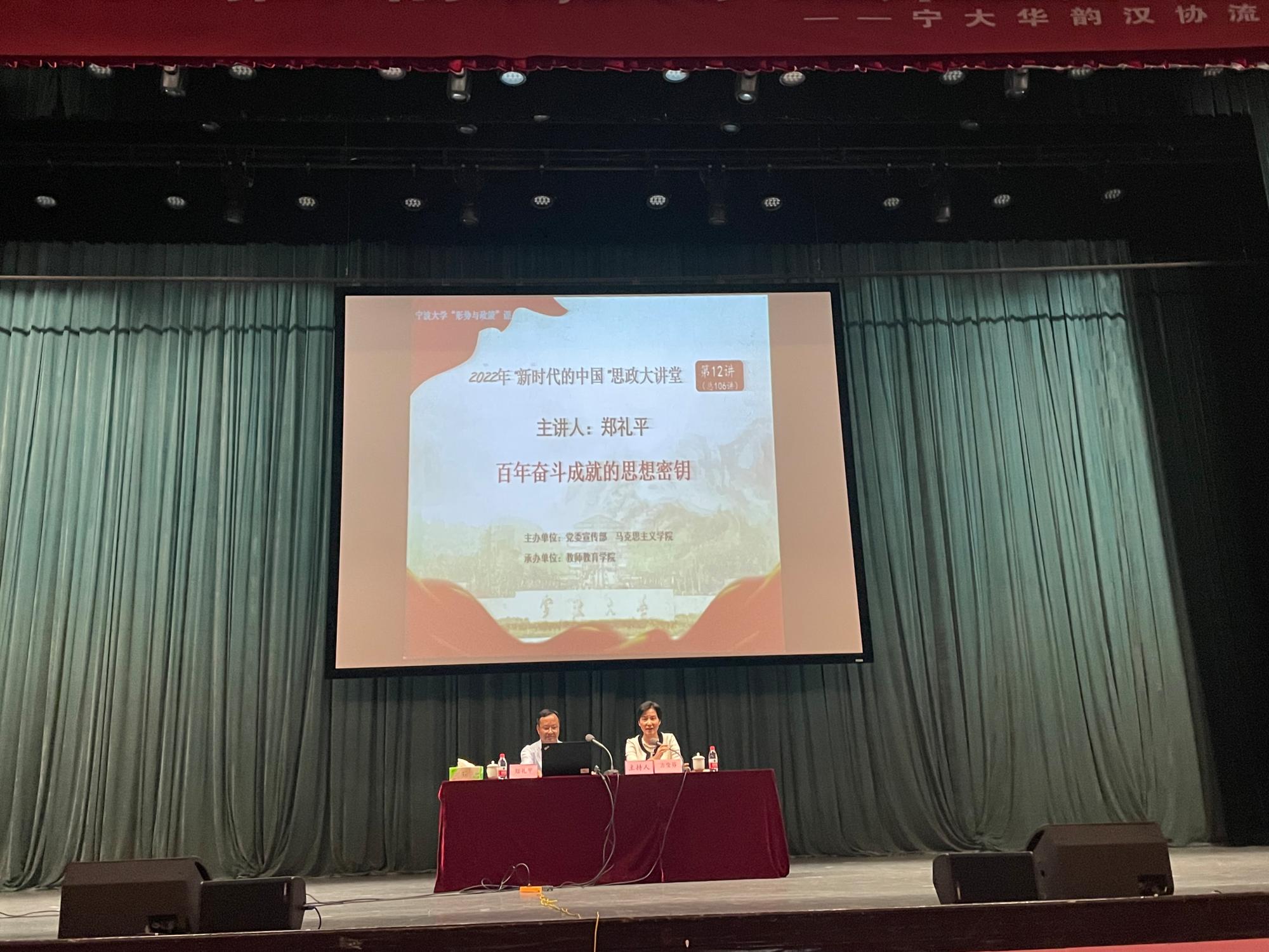 书记兼副院长郑礼平在林杏琴会堂作了题为《百年奋斗成就的思想密钥——谈谈“两个结合”的思想内涵》的形势与政策课讲座,该讲座也是2022年“新时代的中国”思政大讲堂第12讲(总106讲)。教师教育澳门新葡京网