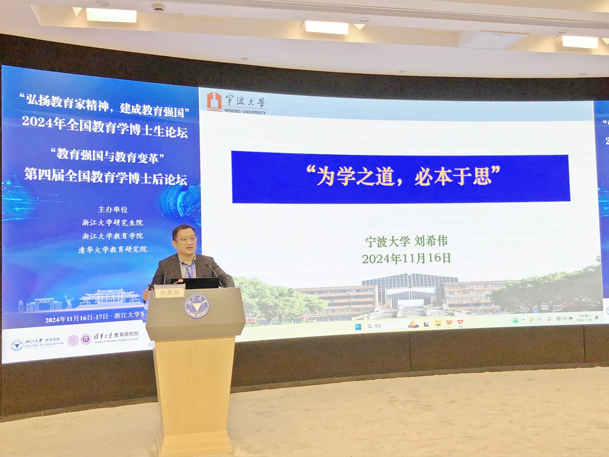 2024年11月16日至17日上午,2024年全国教育学博士生论坛“弘扬教育家精神,建成教育强国”与第四届全国教育学博士后论坛“教育强国与教育变革”在浙江大学紫金港校区成功举办。其中,16日上午作主旨演讲的特邀专家为浙江大学教育澳门新葡京网