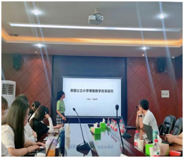第一阶段由徐旭烨同学汇报,汇报主题是“美国公立小学课堂教学改革探究”。汇报内容包括“美国公立澳门新葡京网