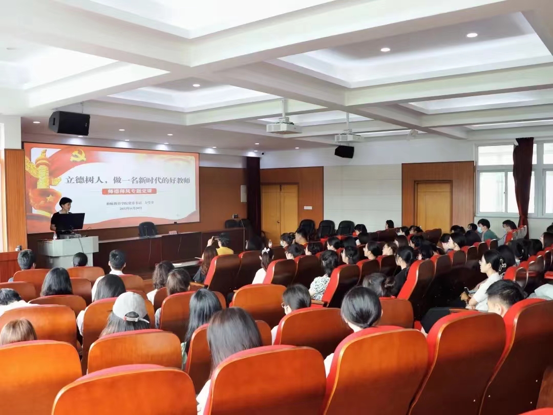 党委负责人为各位毕业生党员讲授最后一堂在校党课——“立德树人,做一名新时代好教师”。她结合澳门新葡京网