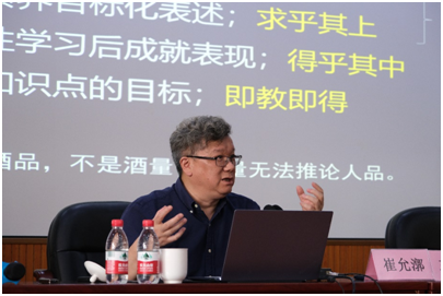 首先,崔教授指出新课标主要有两大突破:核心素养和学业质量。核心素养是课程独特的、关键的、共同的育人价值,具有整体性、实践性和反思性。如果说核心素养体现了一种理想的完整的育人蓝图,那么学业质量就是阶段性学习后的学业成就综合表现,反映了学生实际的学习结果。学业质量超越了聚焦于知识点目标的内容要求,更侧重于学生学习知识后能解决什么问题、完成什么任务,应成为评价与考试命题的主要依据。