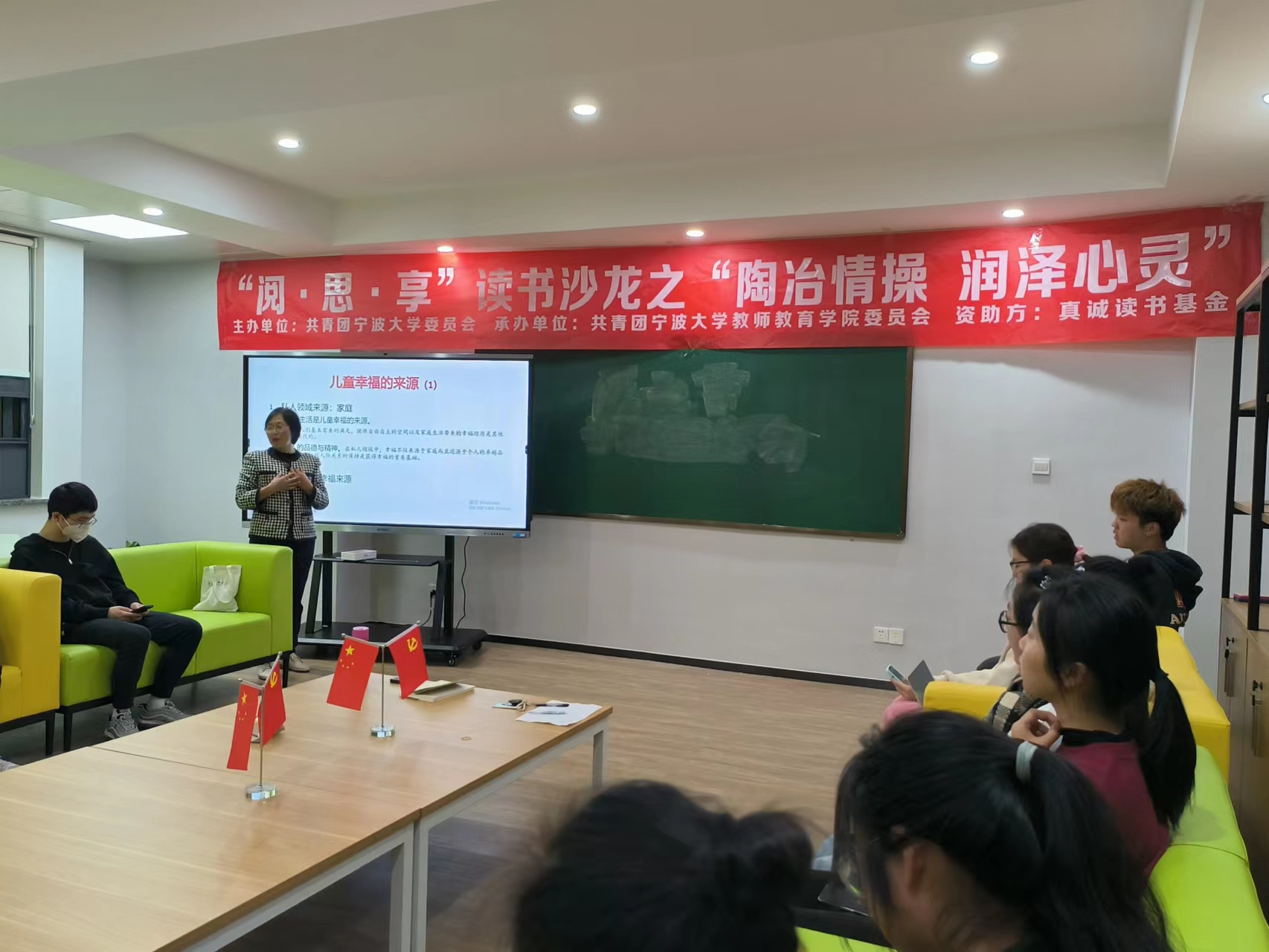 委员会于甬江公寓6号楼春雨书院107举行了“阅·思·享”读书沙龙之“陶冶情操,润泽心灵”活动。我们邀请到研究生导师陶志琼教授与陶润读书社的二十余名学生一起在春雨书院进行读书沙龙活动。陶老师带领读书社成员一同赏析了《儿童幸福与澳门新葡京网