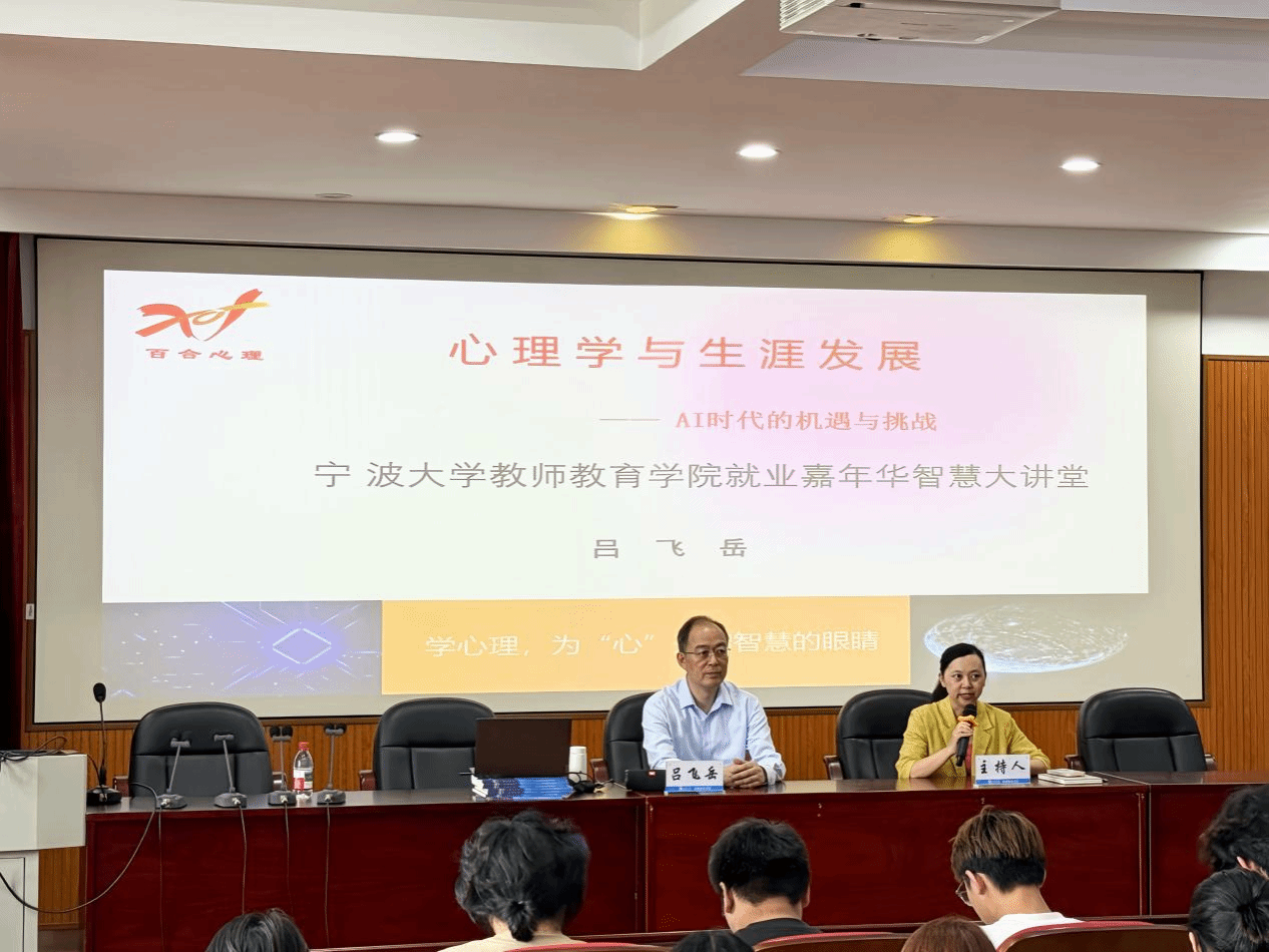 211教室举行。本次讲座特邀百合心理机构创始人吕飞岳老师,围绕"AI时代的机遇与挑战"主题,为心理学专业学生带来了一场精彩的专业学习与职业发展分享会。