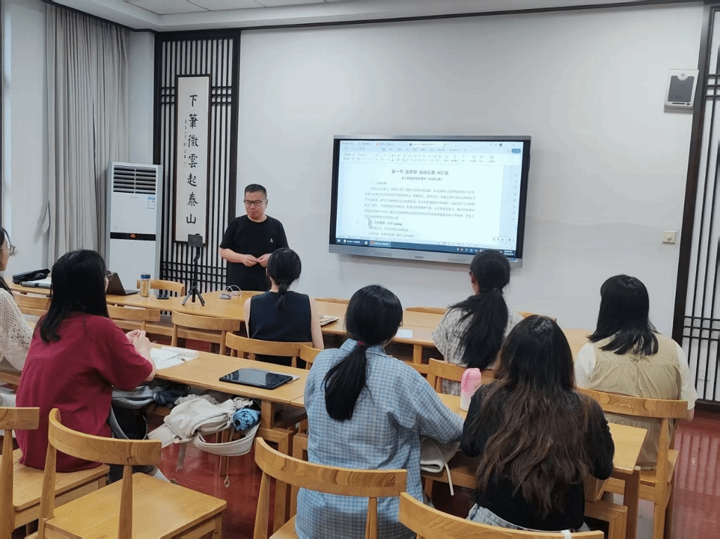 ,与初中语文组开展本学期的“联合教研”活动,研究生曾梦婷执教《白杨礼赞》,研究生周子渝执教《雨的四季》,随后冯教授对教师论文进行指导,对两位学生的检视阅读思维支架的运用进行了点评,结合王阳明知行合一的哲学对语文教学现状进行剖析。
