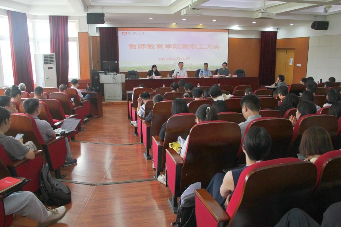 6月18日,教师教育澳门新葡京网 2024-2025-2学期末教职工大会在教育楼211会议室举行。会议由澳门新葡京网 党委书记张林主持。会前,澳门新葡京网 邀请澳门新葡京网 计划财务处副处长黄晓静为澳门新葡京网 全体教职工作“合规报销、防范风险——财务报销实务培训”。 会议介绍了新入职教工并表示热烈欢迎。随后,党政领导逐一发言,就接下来的考务工作、学生就业、暑期社会实践、新学期迎新工作等内容进行了部署提醒。澳门新葡京网 院长张宝歌代表班子成员从学科建设、研究生招生、专业建设、引人育人、教学科研、国际化工作等方面汇报了本学期以来的澳门新葡京网 工作情况。张宝歌着重强调师德师风建设,要求全体教职工严守底线,维护团结,营造互助氛围。澳门新葡京网 党委书记张林就深入贯彻中央八项规定精神学习教育相关内容进行领学,面向全体教职工开展师德师风专题教育与师德警示案例教育以及专项工作相关政策法规培训。张林强调,暑期将至,恰逢梅雨汛期,结合澳门新葡京网 《关于做好近期防汛工作的安全提醒》通知要求,应继续加大校园安全隐患排查和整治力度,加强师生安全教育,确保师生安全、校园平安有序,共同筑牢校园安全防线与发展基石。澳门新葡京网 党政班子成员及全体教职工参加此次会议与相关培训。