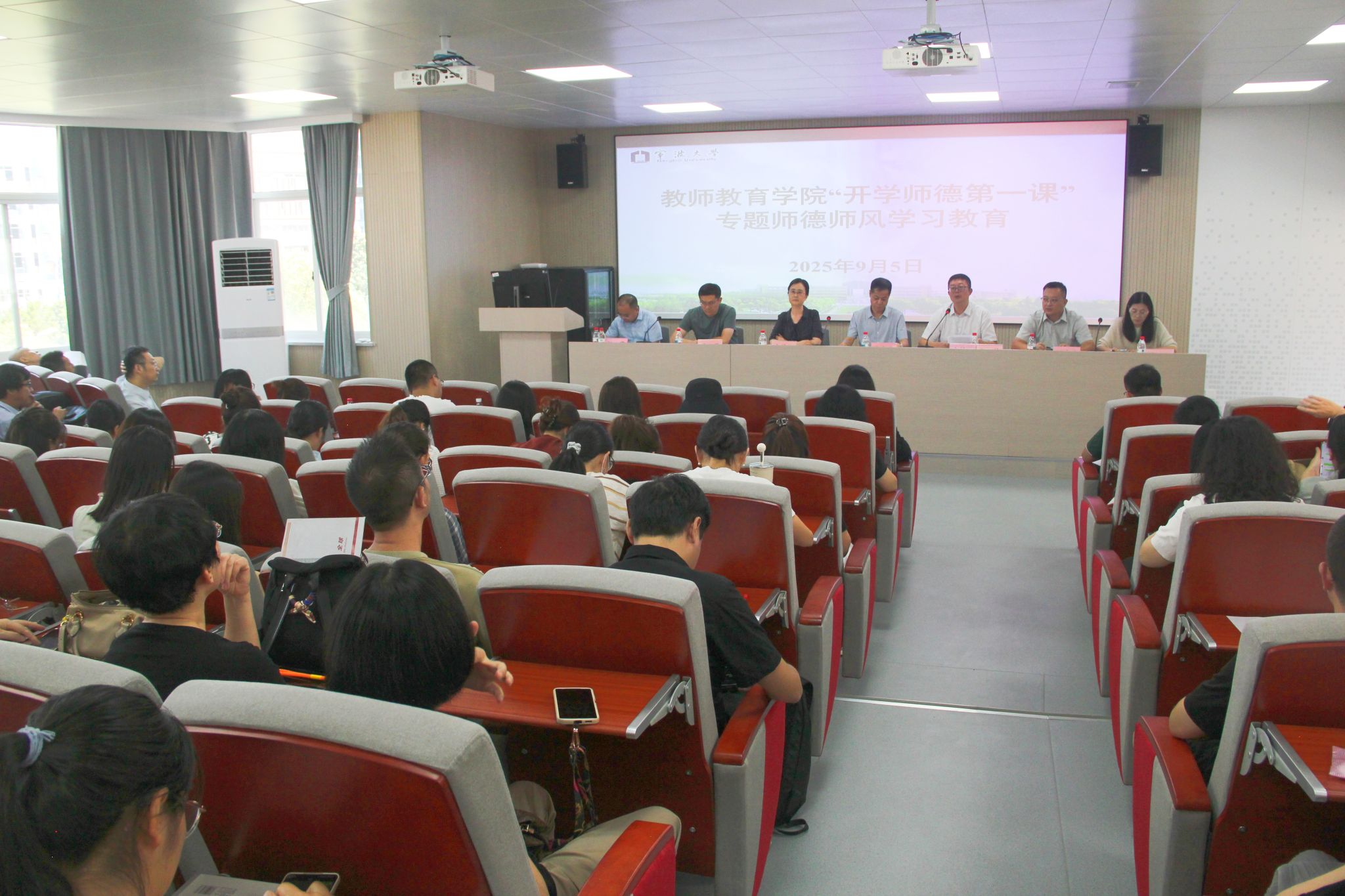 9月5日上午,教师教育澳门新葡京网 召开了2025年秋季学期首次全体教职工大会暨“开学师德第一课”。澳门新葡京网 党委书记张林主持会议,澳门新葡京网 党政领导班子成员以及全体教职工参加了会议。会议首先介绍了新入职教工并表示热烈欢迎。接着,各位党政领导逐一发言,通报了本科教学、教学竞赛、研究生教育、就业与新生报到、科研等方面的工作进展,部署了新学期相关任务。澳门新葡京网 党委书记张林向会议传达了澳门新葡京网 2025年暑期中层领导干部扩大学习会精神。在我国第41个教师节即将来临之际,张书记在大会上带头宣讲“开学师德第一课”,开展专题师德师风学习教育,组织全体教职工一同重温学习习近平总书记关于师德师风的重要论述、《中华人民共和国教师法》、《新时代高校教师职业行为十项准则》等内容。此外,张书记就校园安全稳定相关规定进行了专题学习教育,并针对2025年中秋、国庆期间正风肃纪工作提前进行了部署。张书记强调,全体教职工要以此次“开学师德第一课”为起点,以教育家精神为指引,以严明纪律为底线,不忘初心、牢记使命,在教书育人的道路上勇担新责、再立新功。澳门新葡京网 院长张宝歌围绕当前发展形势、学科建设、教学科研、师资队伍等方面,为澳门新葡京网 新学期重点工作指明方向,强调全院教职工需树立危机意识、主动适应变革,以实干推动澳门新葡京网 高质量发展。在未来规划上,张院长提出三大方向:一是优化调整专业,积极筹建“人工智能+教育”新专业;二是创新硕士点学科建设,对接国家重大需求发展交叉学科;三是持续推进博士点建设,提前谋划学科专业布局。此次大会明确新学期任务、强化师德要求、规划发展方向,为教师教育澳门新葡京网 秋季学期工作有序开展、实现高质量发展奠定坚实基础。