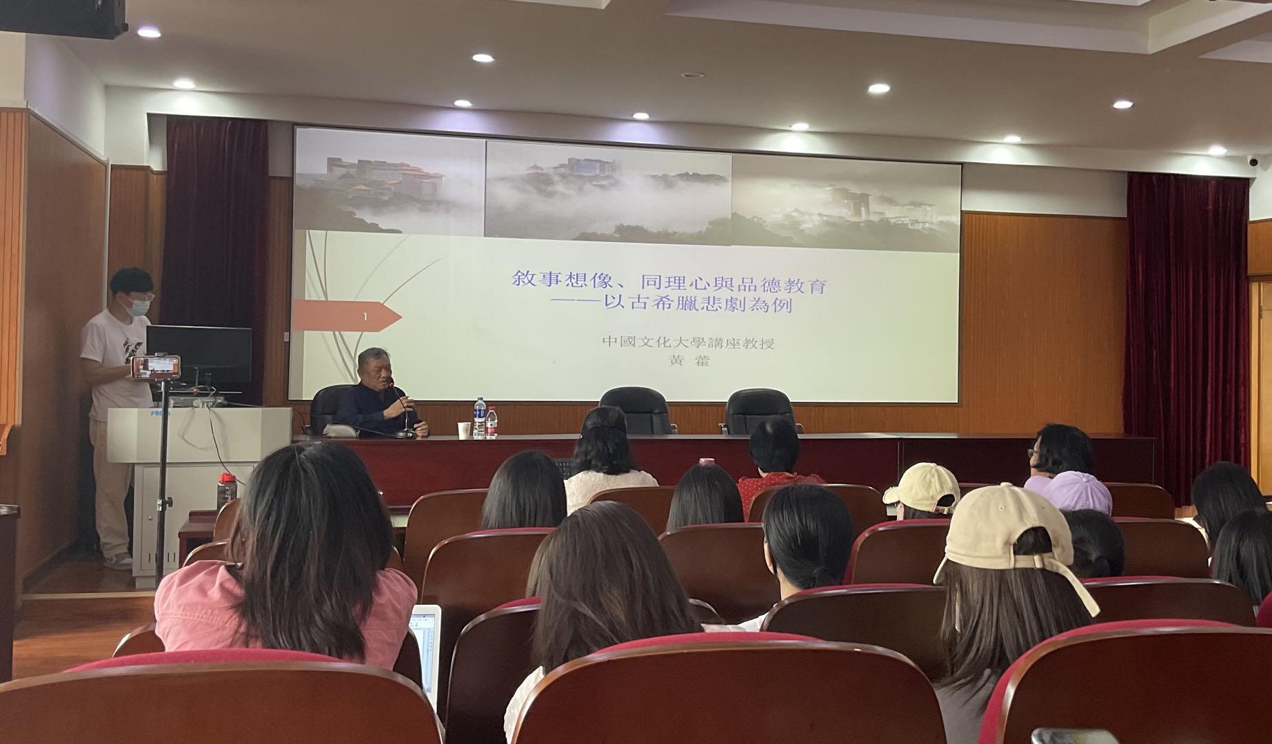 “雪门讲坛”第39讲学术报告在实验楼211展开。台湾地区中国文化大学哲学系黄霍教授向我们做了主题为“叙事想象、同理心与品德教育——以古希腊悲剧为例”的报告,陶志琼教授担任本次学术活动主持人。本次学术活动的主要参加者是澳门新葡京网