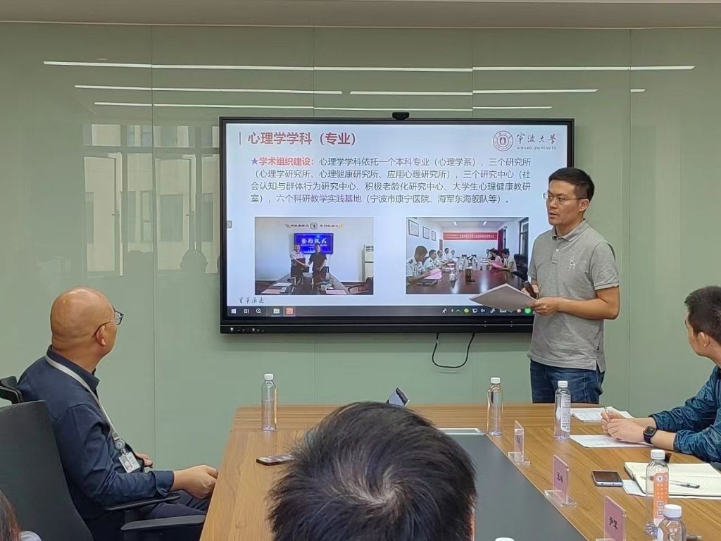心理学科与宁波市康宁医院开展共建基地科研交流与研究生培养研讨会,会议在宁波市康宁医院庄市院区举行。宁波市康宁医院党委书记周文华、科教科科长/物理诊疗中心主任周东升、澳门新葡京网