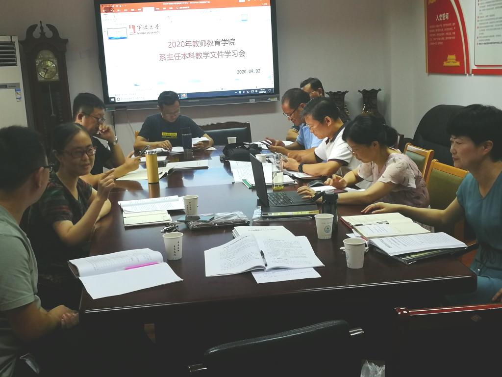教材管理办法》等相关教学管理文件,并且就近期专业认证和实习教学工作进行了布置;随后,各系主任就所学文件谈了各自的学习体会,并提出后续专业建设的发展思路;最后张林副院长提出建立一流本科教学团队的重要意义,希望全体教师齐心协力,共同为建设一流本科教学团队努力。
