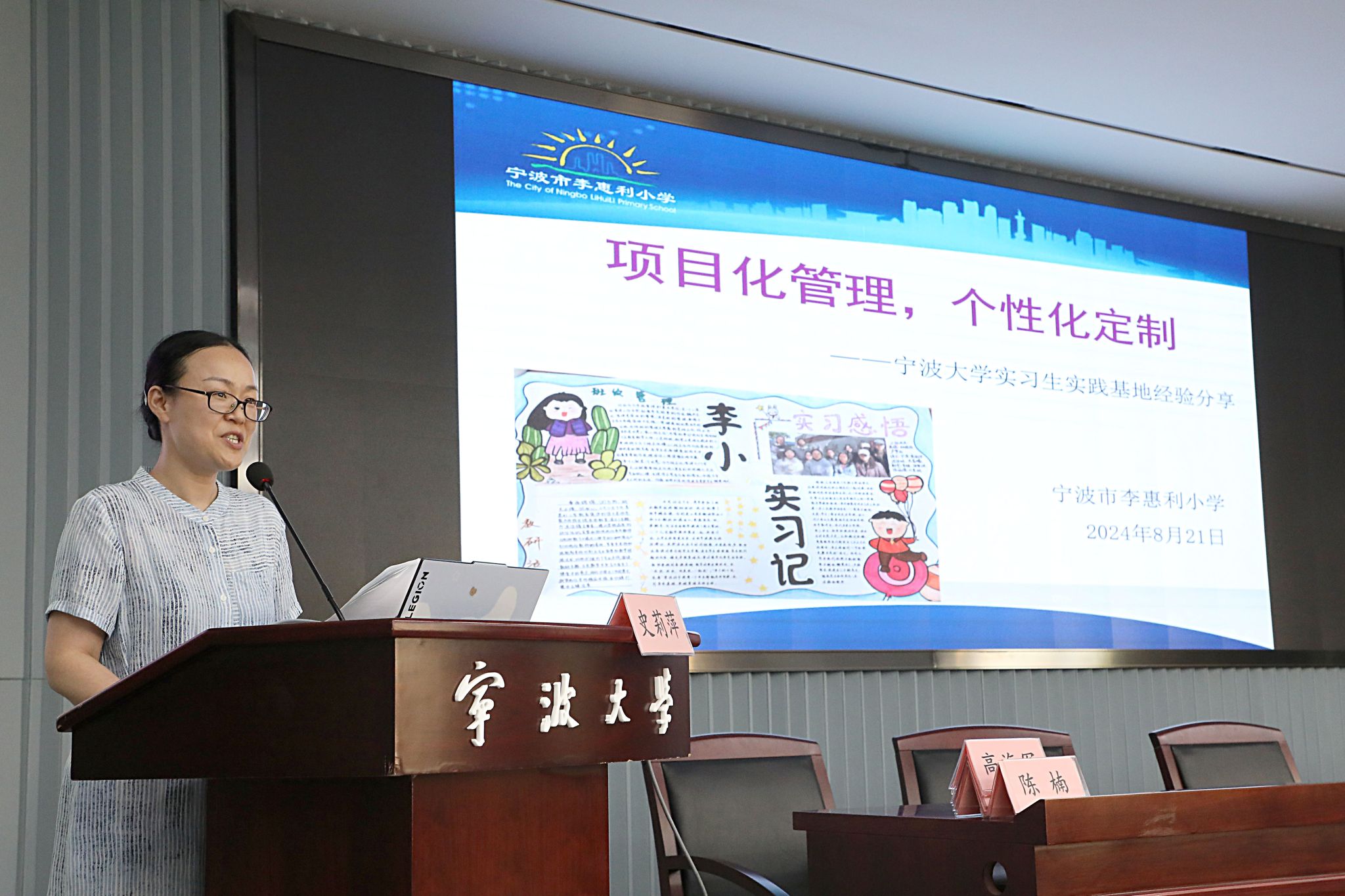 实习生实践基地经验分享》为报告主题,介绍了李惠利小学在实习生培养和教育教学管理方面的宝贵经验和创新做法。她围绕“保障”“融合”“奖励”三个关键词,探讨了双方在澳门新葡京网