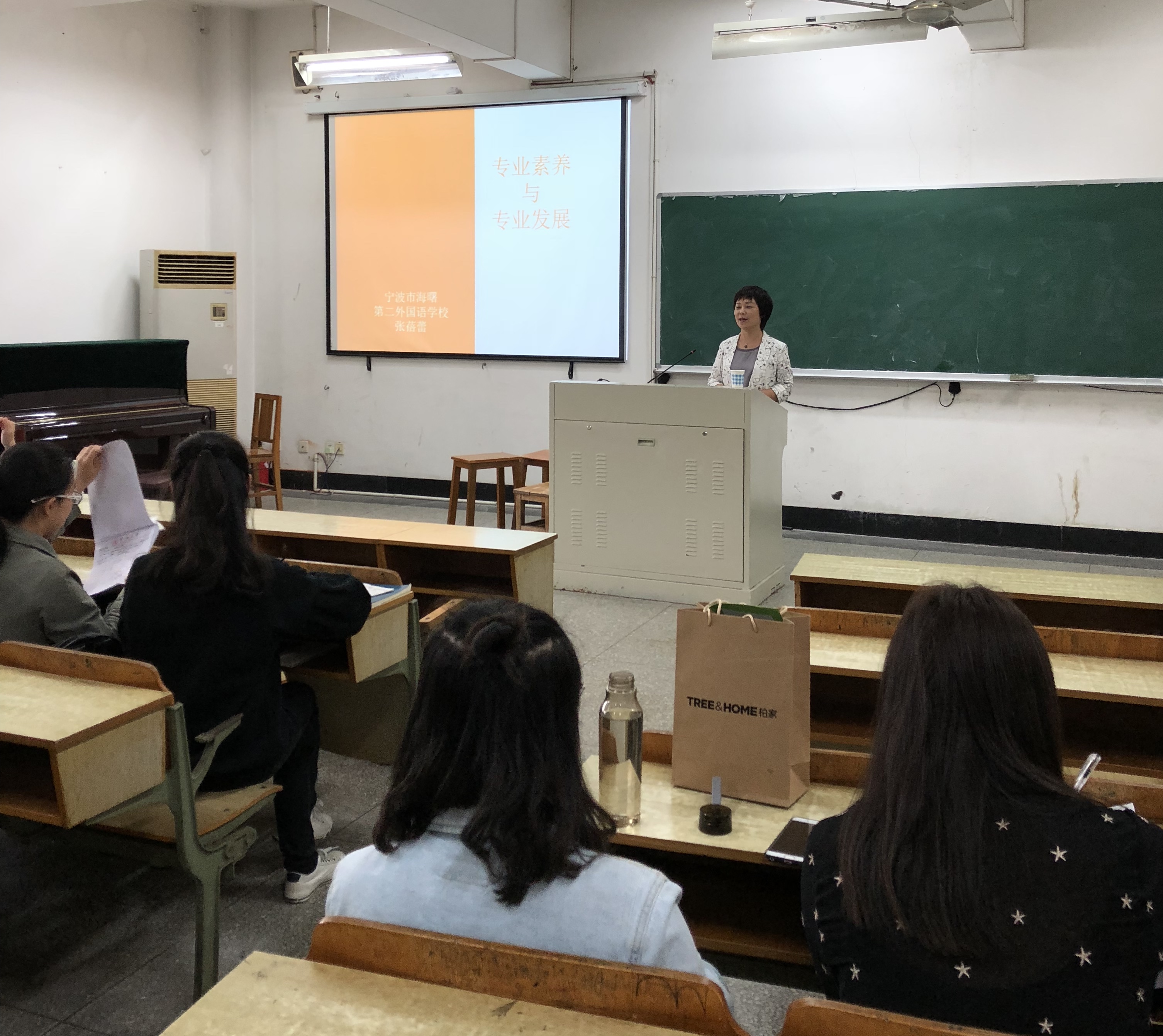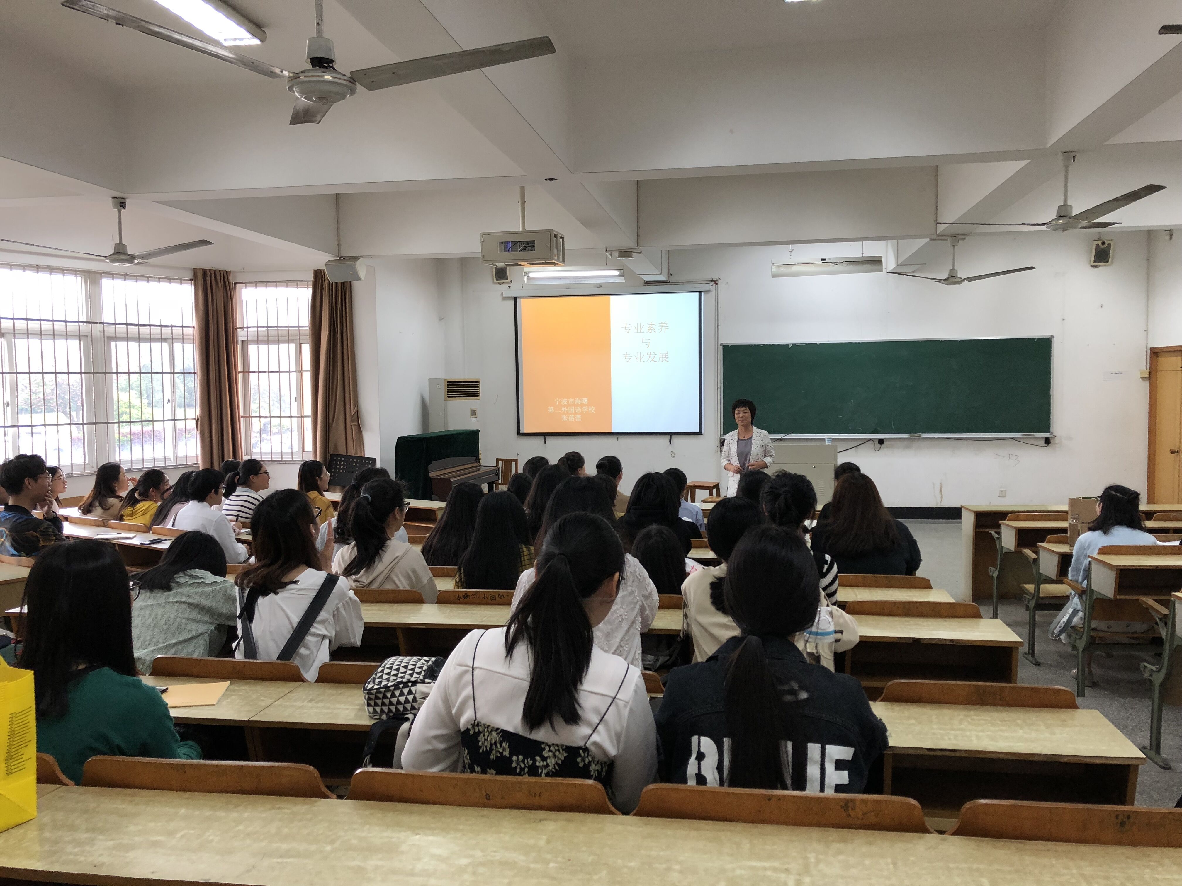 小学部校长张蓓蕾老师主讲,英教各年级同学到场聆听。讲座由英语教育系系主任张光陆老师主持。