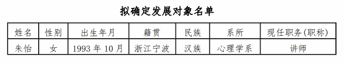 党委规定,现将拟确定为发展对象人选的1名同志予以公示,公开征求意见。现就有关事项通告如下: