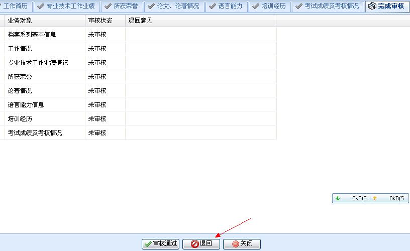 四、新葡京娱乐 人事秘书可在职称申报系统“新葡京娱乐 申报审核”模块中退回申报者的材料。如需操作退回申报者全部材料,可点击“完成审核”中的“退回”按钮。