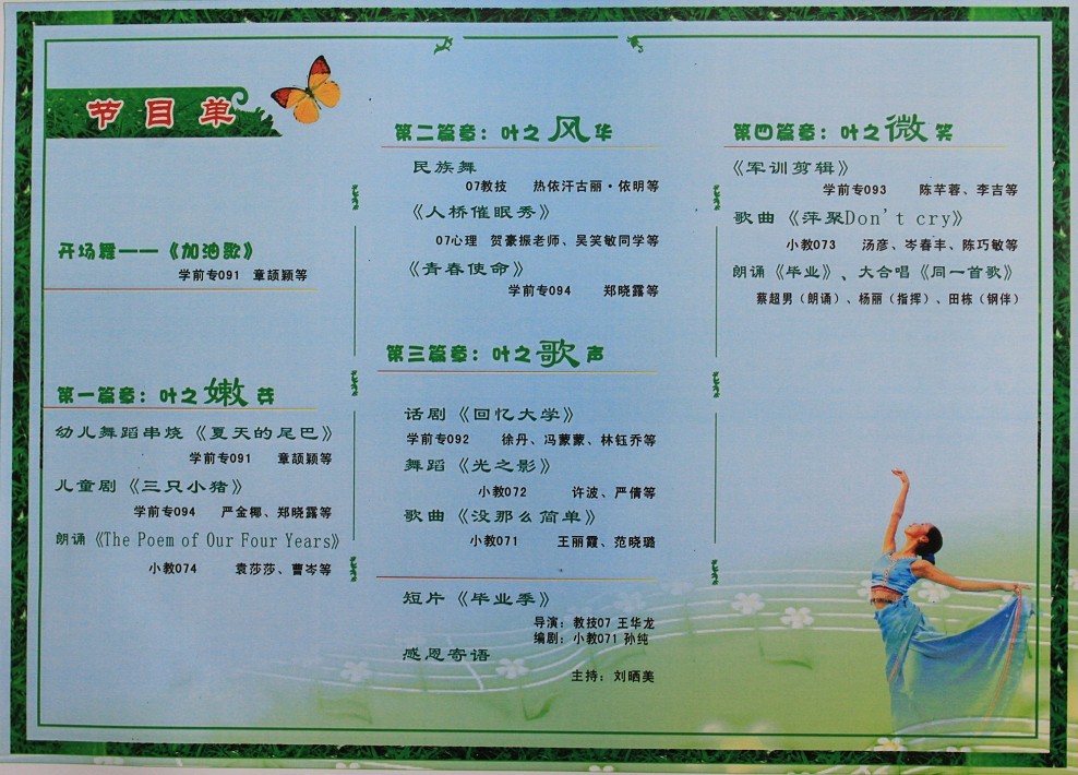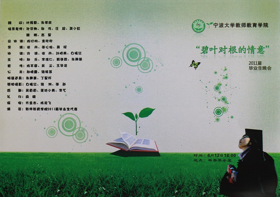 你们好,新葡京娱乐 《2011年新葡京娱乐 “碧叶对根的情意”毕业生晚会》的彩排工作已经结束,现将晚会时间、节目单公布,敬请届时光临!