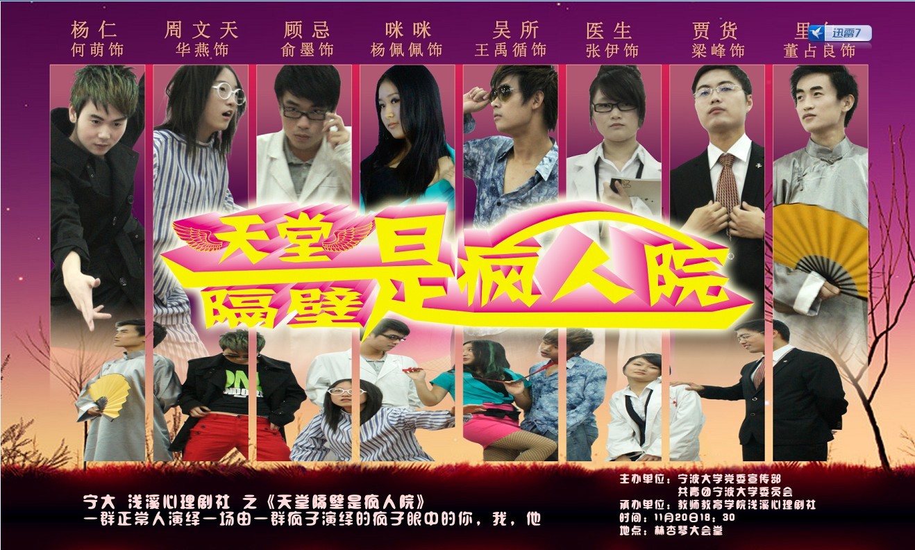 浅溪心理剧社《天堂隔壁是疯人院》专场演出将于11月20日(本周日)晚18:30在新葡京娱乐