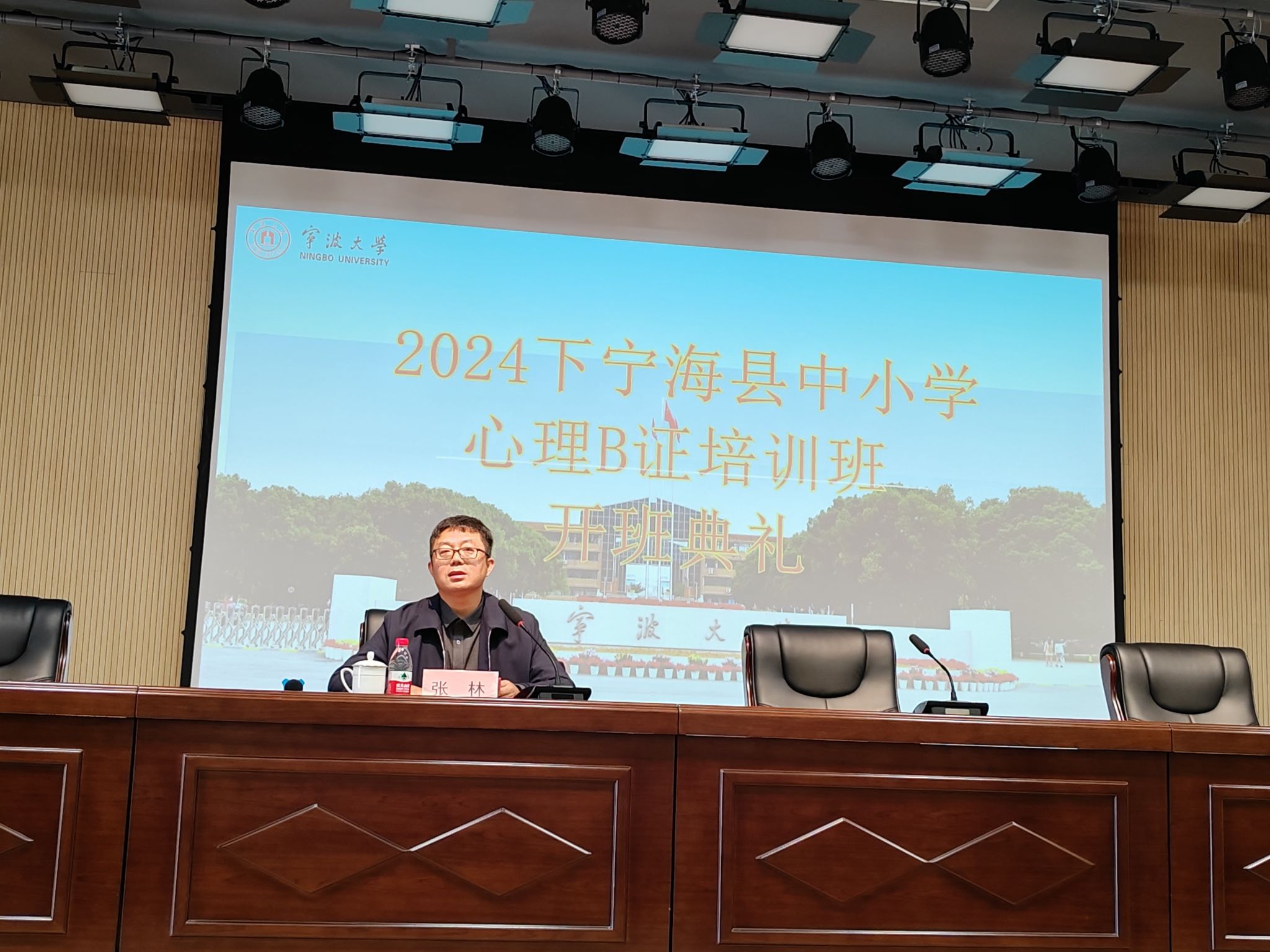 致辞,他首先对宁海县教育局的信任和支持表示衷心的感谢,对前来参训的学员表示热烈的欢迎。张林在致辞中强调了心理健康的重要性,他指出参加本次培训不仅可以帮助参训教师提升心理健康教育教学的业务水平,还可以提升教师队伍自身的心理健康水平。