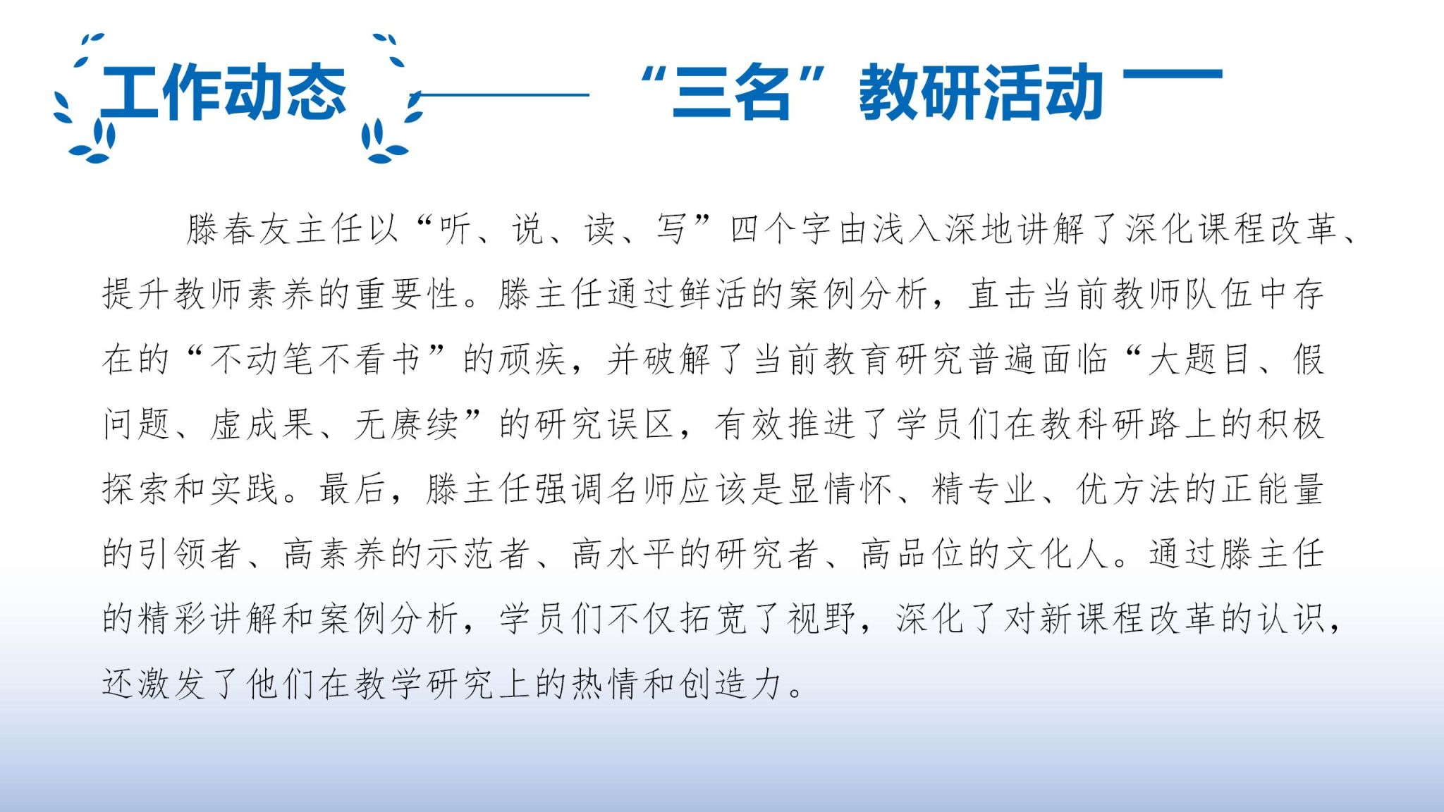 澳门新葡京网 基础教育“三名工程”研究中心简报——“新课程新教学新评价”专题培训